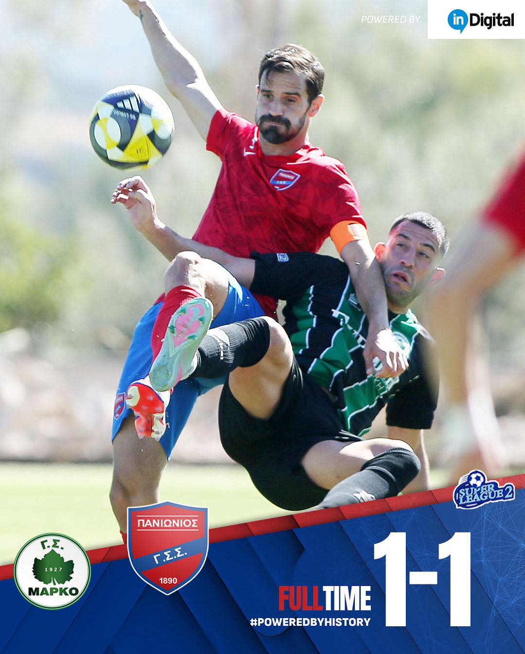 Στο 1-1 έμειναν Πανιώνιος και Μαρκό για την 4η αγωνιστική του Νοτίου Ομίλου της Super League 2, με αποτέλεσμα οι "κυανέρυθροι" να απομακρυνθούν κι άλλο από την κορυφή.