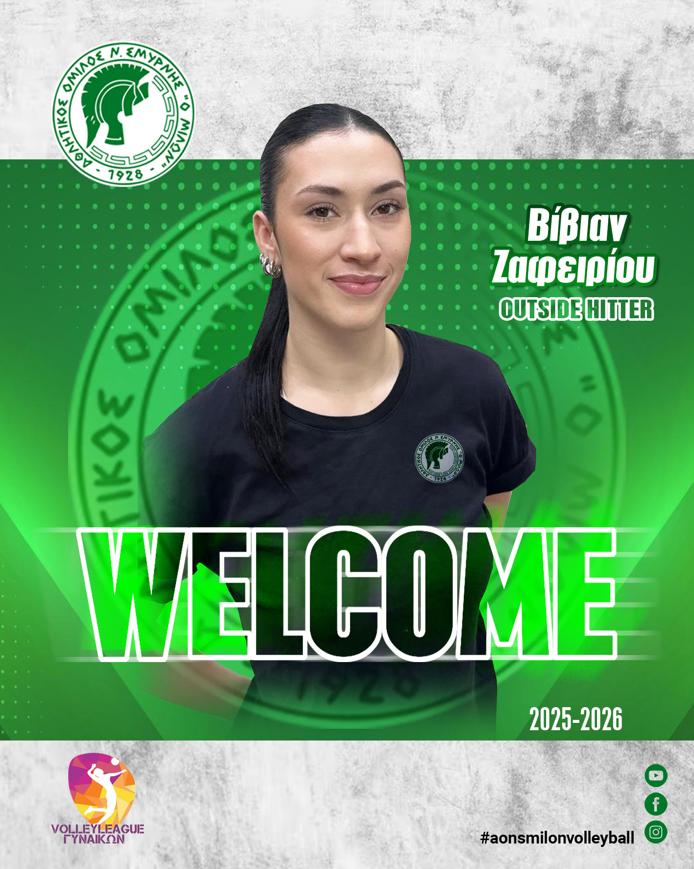"Ο Α.Ο.Ν.Σ. Μίλων ανακοινώνει την έναρξη της συνεργασίας του με την Βίβιαν Ζαφειρίου για το υπόλοιπο της αγωνιστικής περιόδου 2025–2026, η οποία εντάσσεται στο δυναμικό της ομάδας μας αγωνιζόμενη στη θέση της ακραίας.