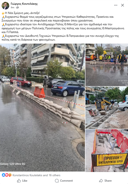 ο Δήμαρχος Νέας Σμύρνης. έγραψε στον λογαριασμό του στο Facebook