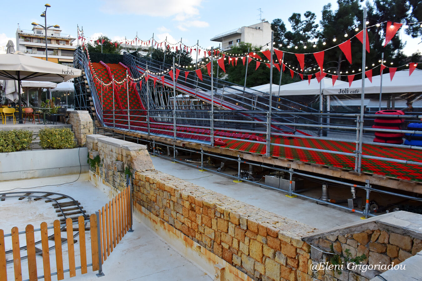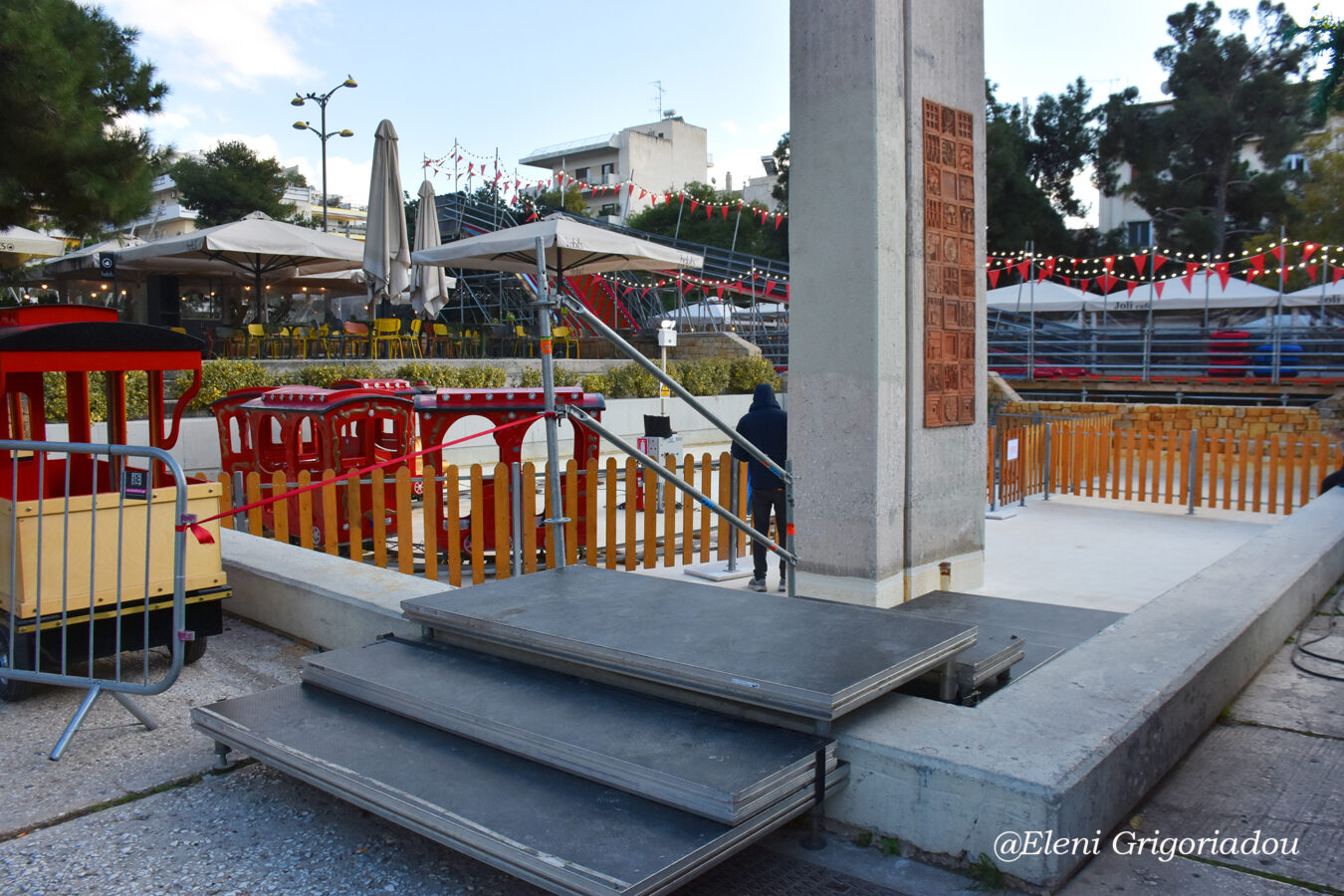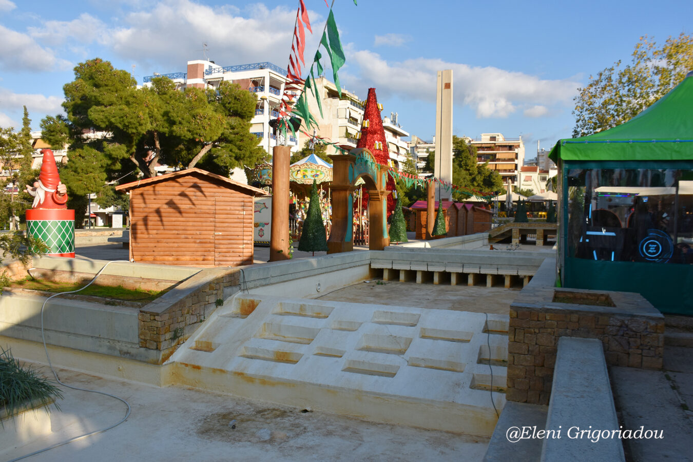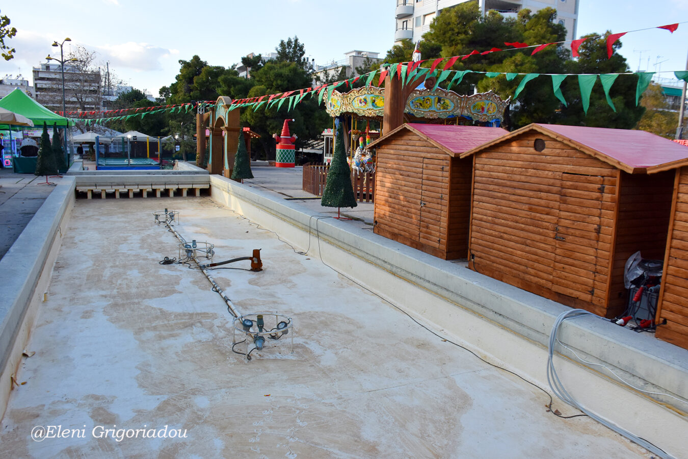 Η υπερπαραγωγή που βλέπουμε έχει στηθεί από ιδιωτική επιχείρηση, στην οποία ο Δήμος παραχώρησε όλο το ελεύθερο από τραπεζοκαθίσματα μέρος της Πλατείας. “Έργο” του Δήμου είναι τα άδεια σiντριβάνια. Θέαμα μάλλον θλιβερό και παρακμιακό, ειδικά τέτοιες μέρες…
