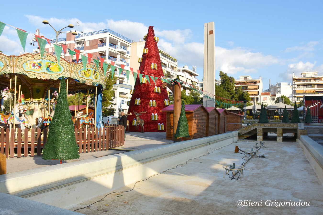 Η Πλατεία Νέας Σμύρνης διεκδικεί επάξια τον τίτλο της πιο κακόγουστα στολισμένης Πλατείας της χώρας. Είχαμε την ψευδαίσθηση ότι ο περσινός εορταστικός, αισθητικός βιασμός της Πλατείας δεν θα επαναληφθεί, εις μάτην βεβαίως. Φέτος είναι ακόμη πιο βίαια επιθετικός. Άδειασαν τα σιντριβάνια και έστησαν ένα τεράστιο πάρκο-έκτρωμα αποτελούμενο από τσουλήθρες, τραινάκια, καρουζέλ, τραμπολίνα, παγοδρόμιο και περίπτερα, καταλαμβάνοντας όλο τον ζωτικό χώρο της Πλατείας.