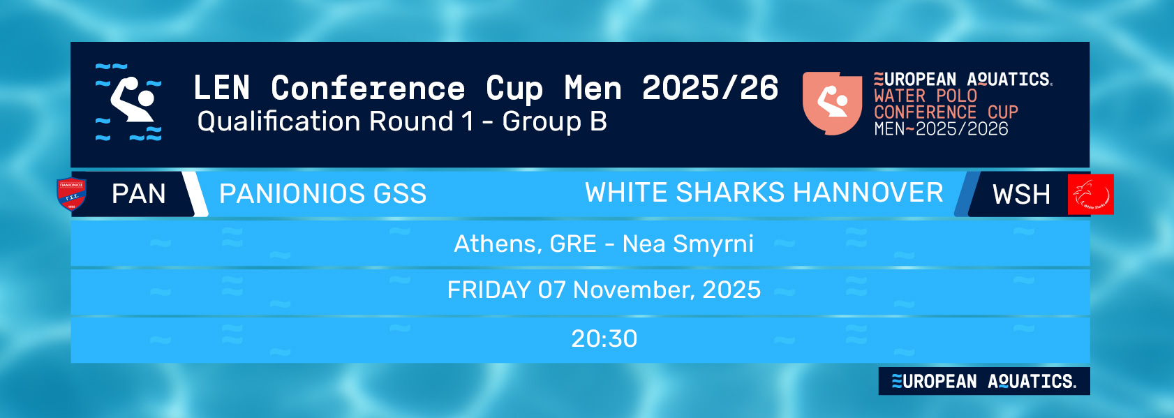 20:30 — Panionios GSS (GRE) vs White Sharks Hannover (GER)