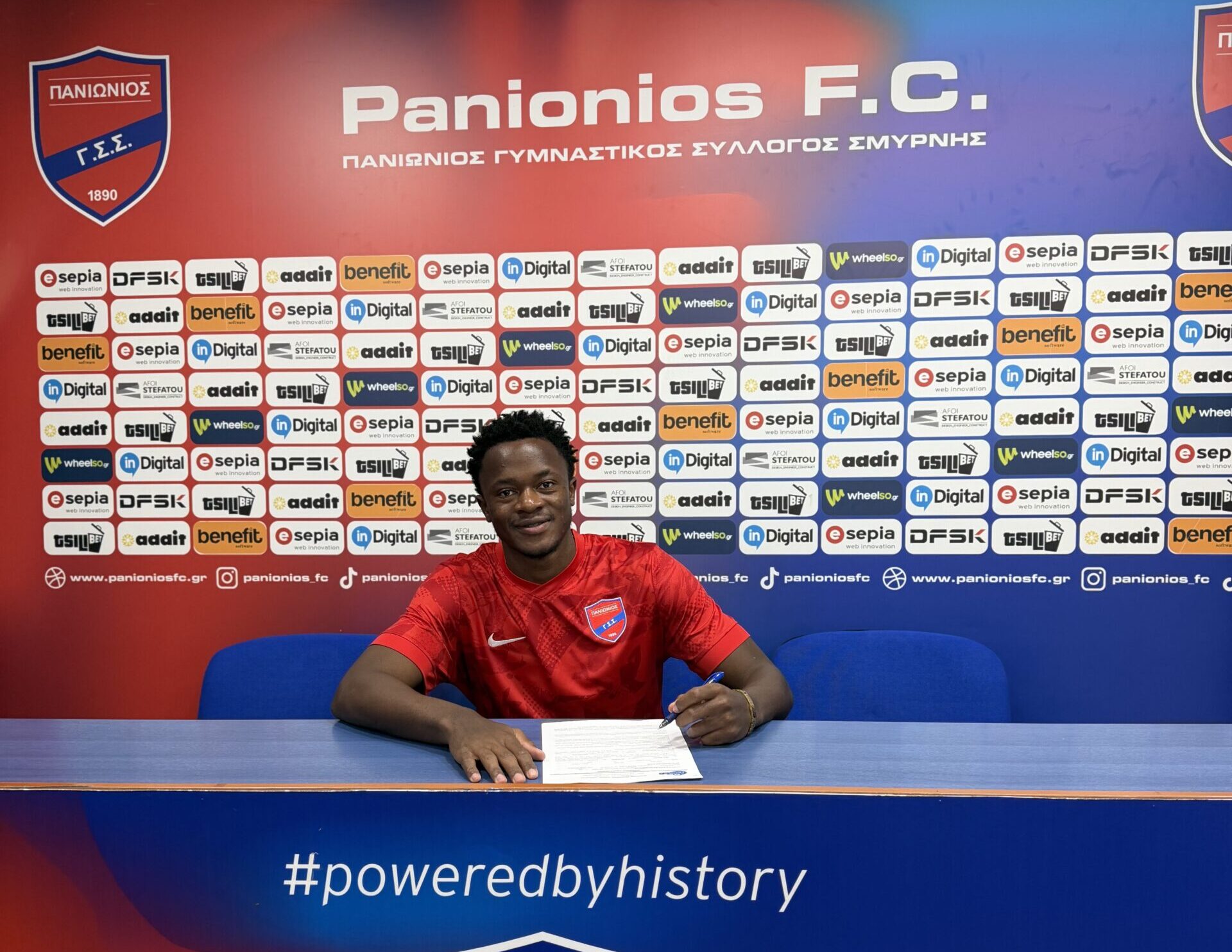 Καλωσορίζουμε τον Ulrich Fokam στην οικογένεια του Πανιωνίου και του ευχόμαστε υγεία και πολλές επιτυχίες με την κυανέρυθρη φανέλα".