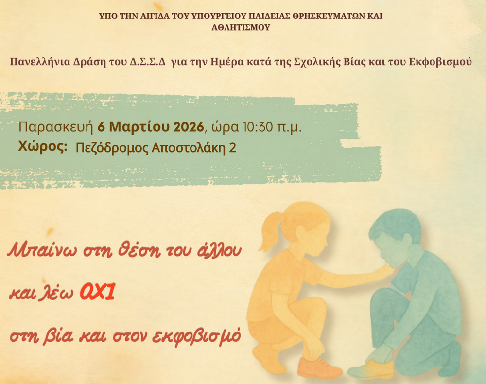 Η κεντρική ημέρα υλοποίησης ορίζεται για την Παρασκευή 6 Μαρτίου 2026, υπό την Αιγίδα του Υπουργείου Παιδείας, Θρησκευμάτων και Αθλητισμού. Η δράση έχει ως