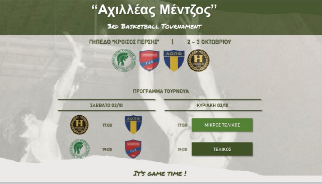 Το τουρνουά μπάσκετ στη μνήμη μιας εκ των σπουδαιότερων προσωπικοτήτων στην ιστορία του Μίλωνα, του Αχιλλέα Μέντζου, θα διεξαχθεί το Σαββατοκύριακο 2-3 Οκτωβρίου στις εγκαταστάσεις του συλλόγου, με τη συμμετοχή επίσης του Πανιωνίου, του ΑΟ Παλαιού Φαλήρου και του Ηλυσιακού. Μάλιστα, ο Μίλωνας θα αγωνιστεί κόντρα στους "κυανέρυθρους" στον έναν ημιτελικό, ο ΑΟΠΦ με τον Ηλυσιακό στον άλλον και οι νικητές θα διεκδικήσουν την πρώτη θέση στον μεγάλο τελικό.