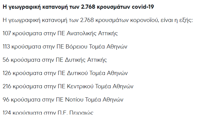 2768 τα κρούσματα στα χτεσινά στοιχεία ΕΟΔΔΥ. 96 κρούσματα COVID19 ο Νότιος Τομέας.