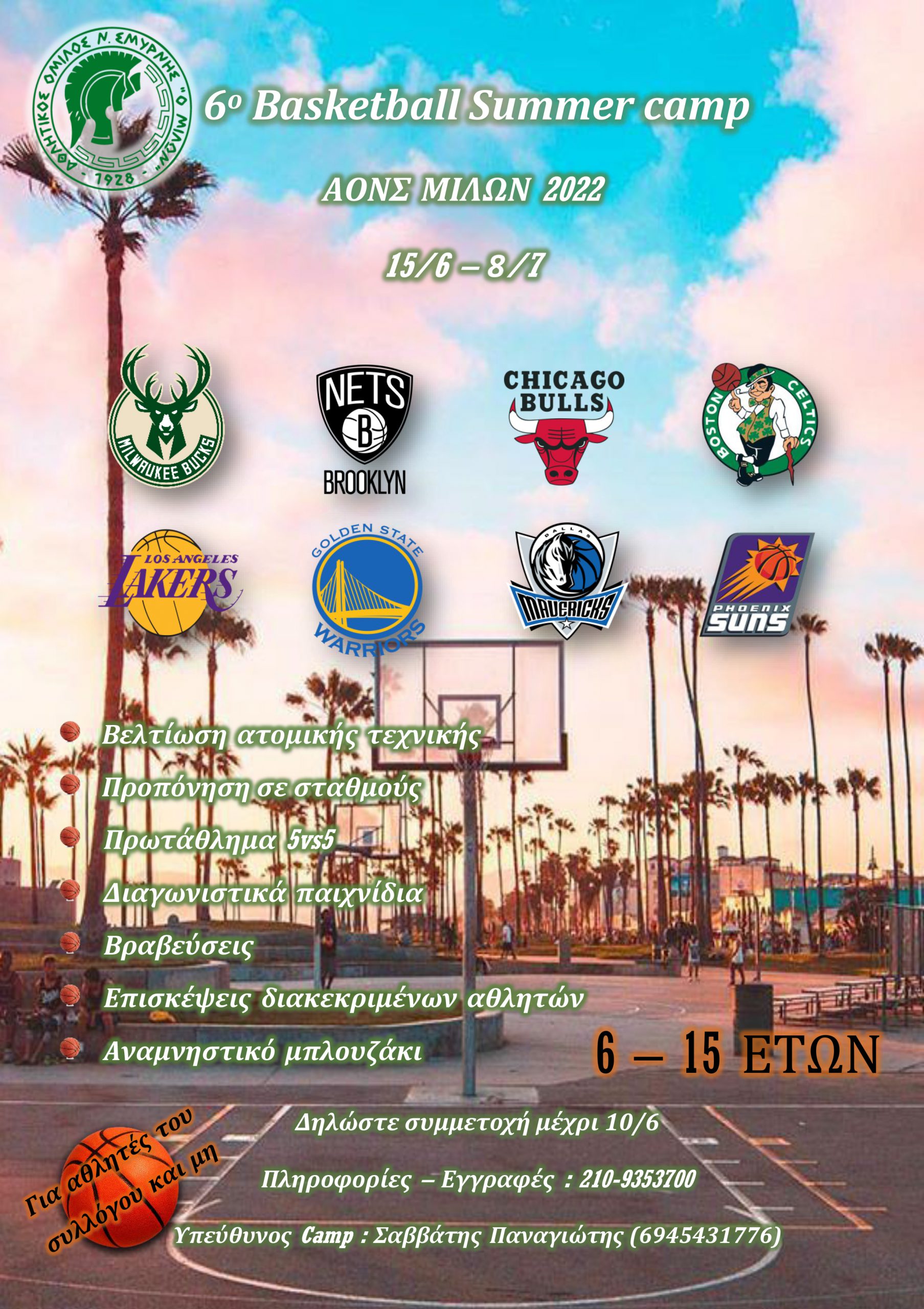 Από τις 15 Ιουνίου έως τις 8 Ιουλίου, θα πραγματοποιηθεί το 6ο Basketball Summer Camp στις αθλητικές εγκαταστάσεις του Μίλωνα.