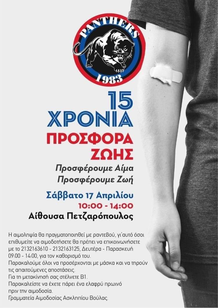 Η ανάγκη για απόθεμα στην Τράπεζα Αίματος του Panthers Club 1983, είναι εξαιρετικά αυξημένη.