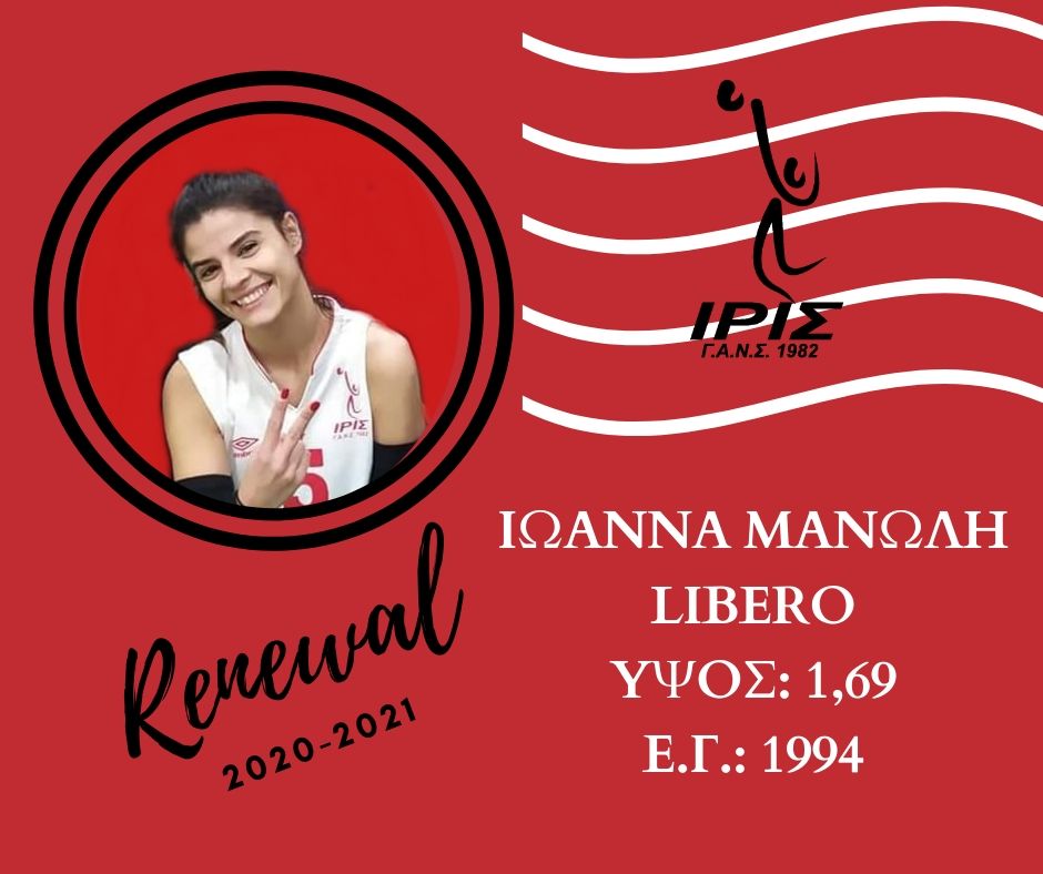 Στην Ίριδα συνεχίζονται οι ανανεώσεις με τις παίκτριες του βασικού κορμού, με την ομάδα της Νέας Σμύρνης να ανακοινώνει πως και η λίμπερο Ιωάννα Μανώλη θα βρίσκεται στο ρόστερ και την επόμενη σεζόν.