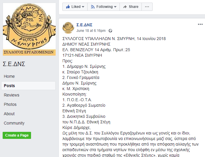 Ολόκληρη η ανάρτηση της επιστολής διαμαρτηρίας στον ακόλουθο σύνδεσμο