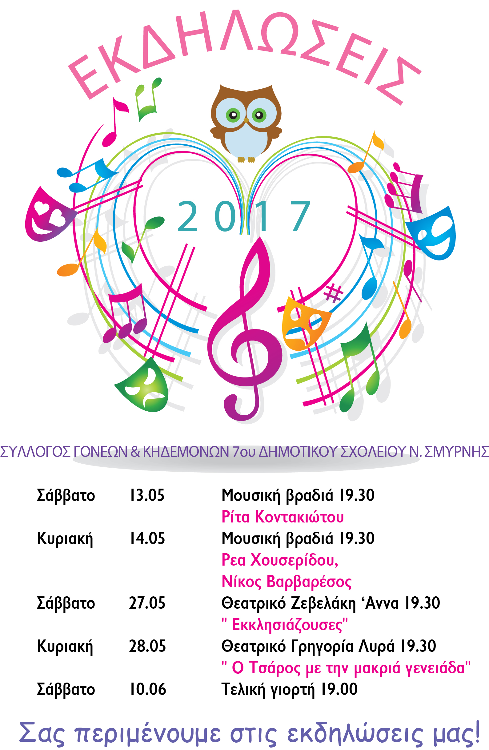 Μουσικές Βραδιές αλλά θεατρικά δρώμενα έχει μεταξύ άλλων η χρονιά που κλείνει στο 7ο Δημοτικό της πόλης. Δείτε το πρόγραμμα όπως το οργανώνει και το παρουσιάζει ο Σύλλογος Γονέων και Κηδεμόνων