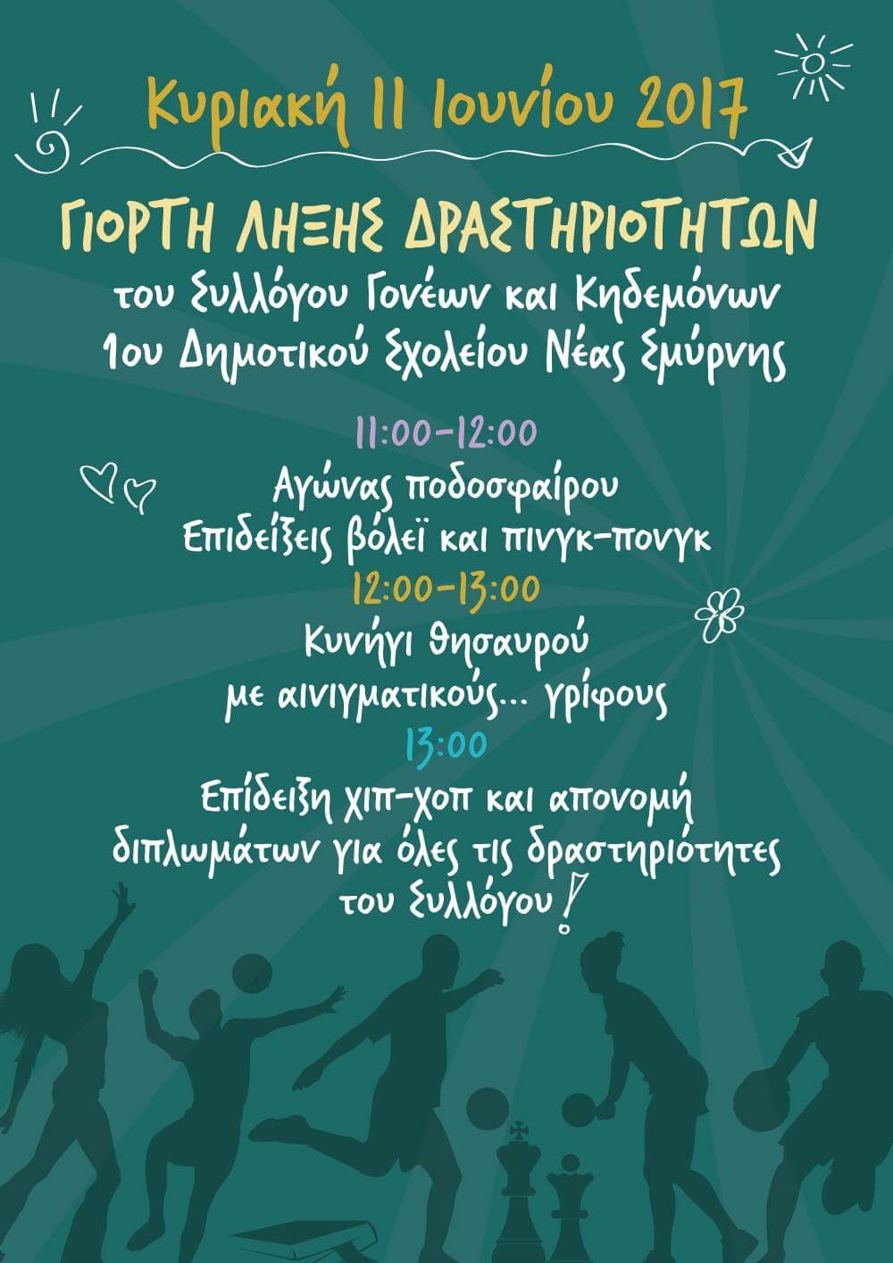 Κυριακή 11 Ιουνίου στο 1ο Δημοτικό Νέας Σμύρνης