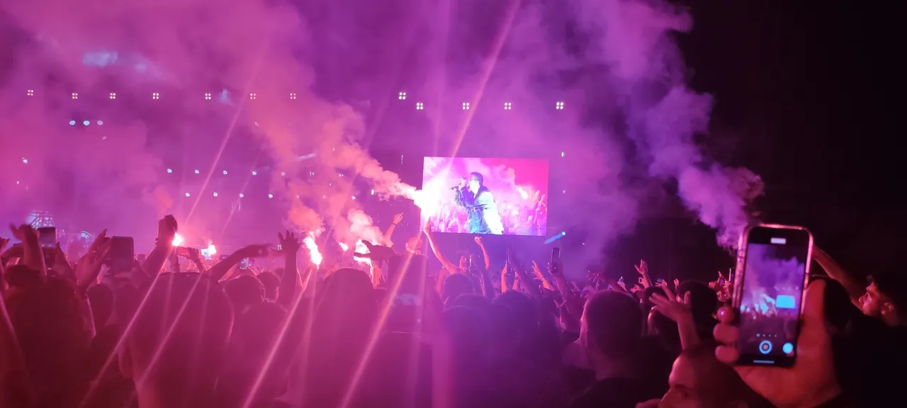 Δύο ώρες μετά δεν έπεφτε καρφίτσα. Λίγο μετά τις 21.30 τα φώτα χαμήλωσαν, ο ράπερ-φαινόμενο έκανε την εμφάνισή του και το πικάπ του καλού του φίλου και συνεργάτη Βeats Pliz πήρε «φωτιά» μαζί με τους πυρσούς των πιο φανατικών ακροατών του.