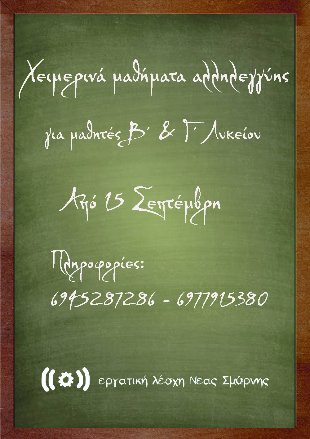 Χειμερινά μαθήματα αλληλεγγύης για μαθητές Β' & Γ' Λυκείου από την Εργατική Λέσχη Νέας Σμύρνης