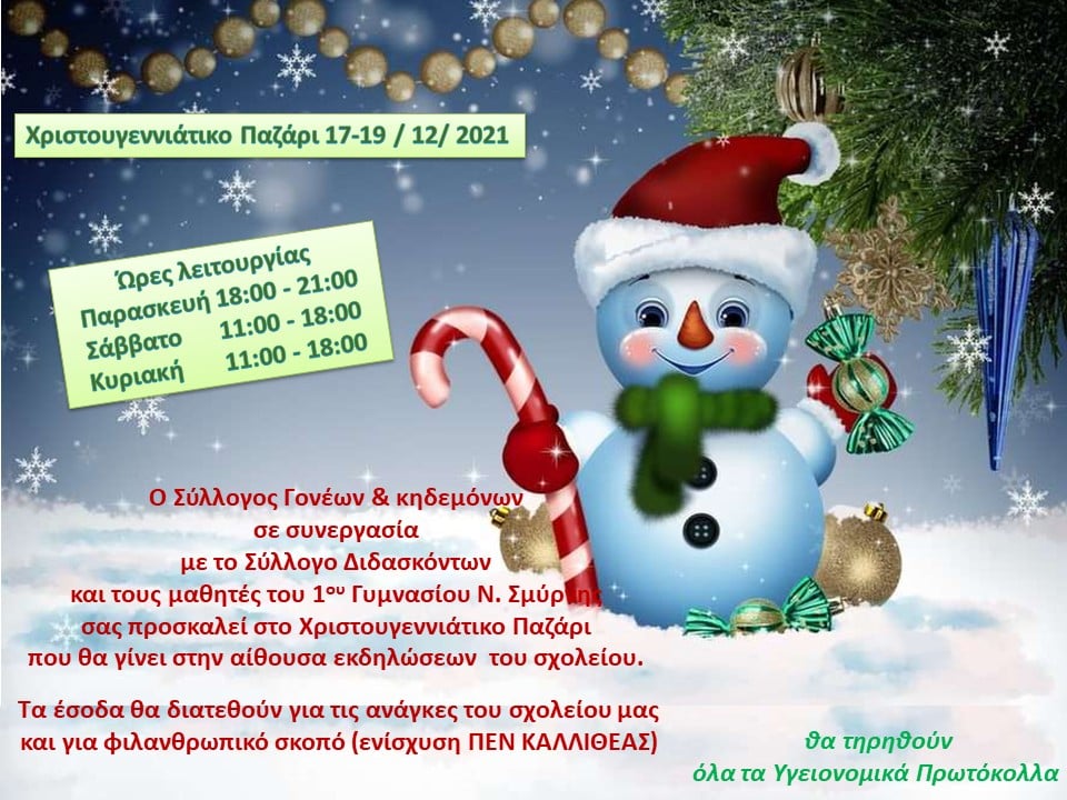 Χριστουγεννιάτικο 3ημερο παζάρι στο 1ο Γυμνάσιο Νέας Σμύρνης