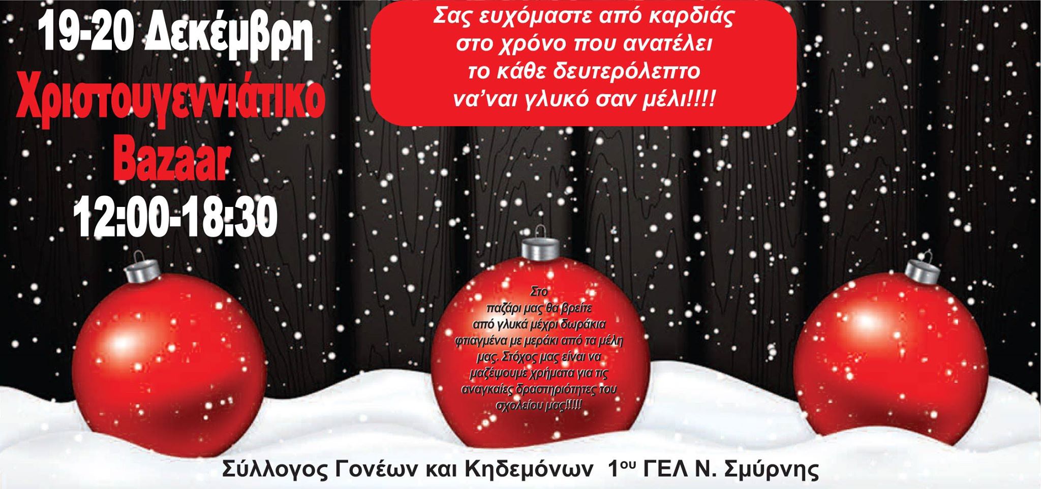 Χριστουγεννιάτικο Bazzaar από το 1ο ΓΕΛ Νέας Σμύρνης 19-20 Δεκεμβρίου
