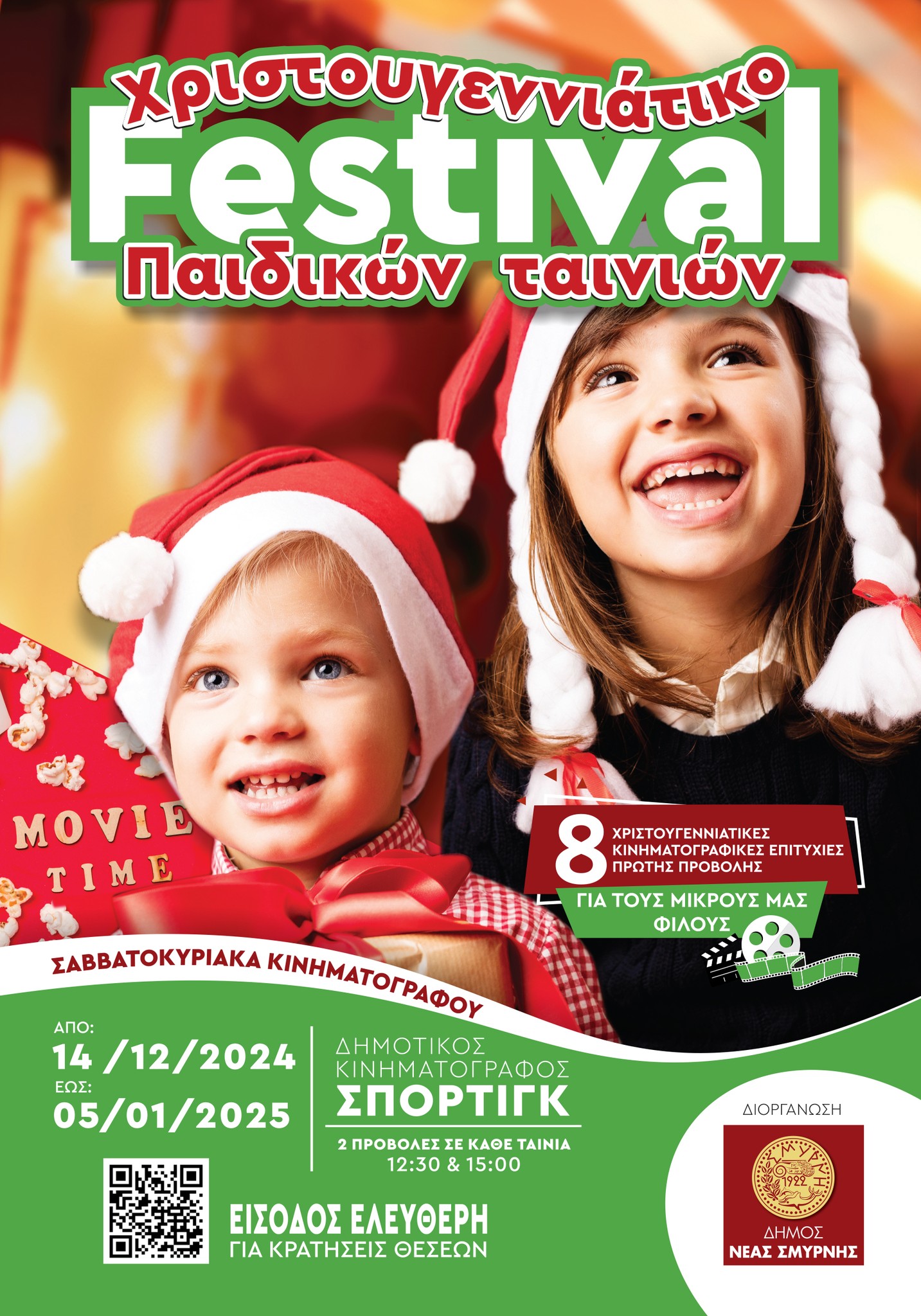 Στην μαγεία των Χριστουγέννων μέσω του κινηματογράφου ταξιδεύει τα παιδιά ο Δήμος Νέας Σμύρνης τα τέσσερα Σαββατοκύριακα των γιορτών στις 14-15, 21-22, 28-29 Δεκεμβρίου 2024 και στις 4-5 Ιανουαρίου 2025