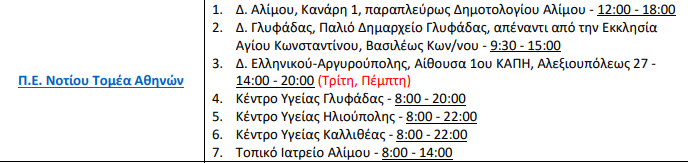 Δείτε τα σταθερά σημεία που γίνονται τεστ από τον ΕΟΔΥ στο Νότιο Τομέα Αθηνών