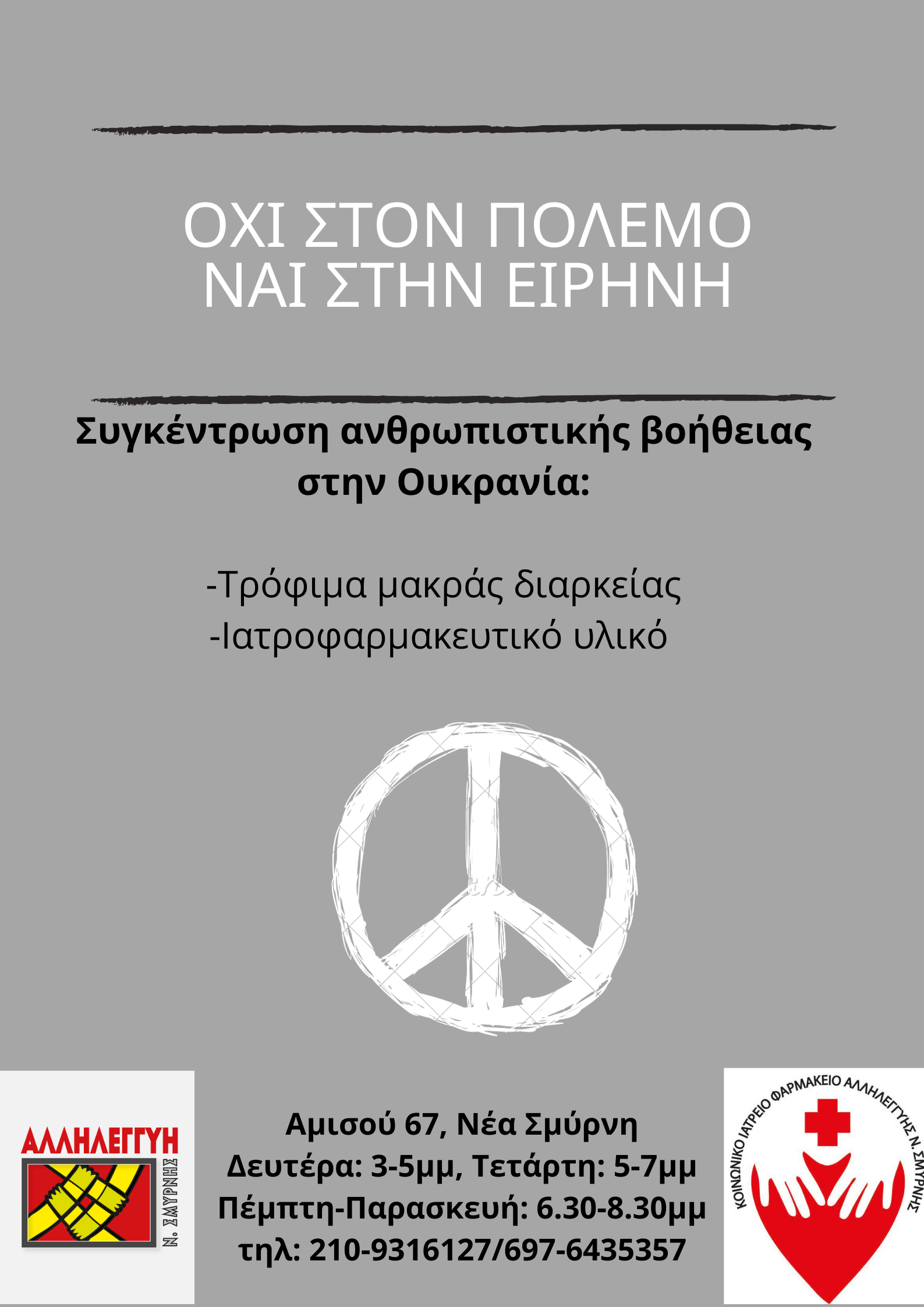 Καλούμε σε συγκέντρωση ανθρωπιστικής βοήθειας στην οδό Αμισού 67, Νέα Σμύρνη τις εξής ώρες: