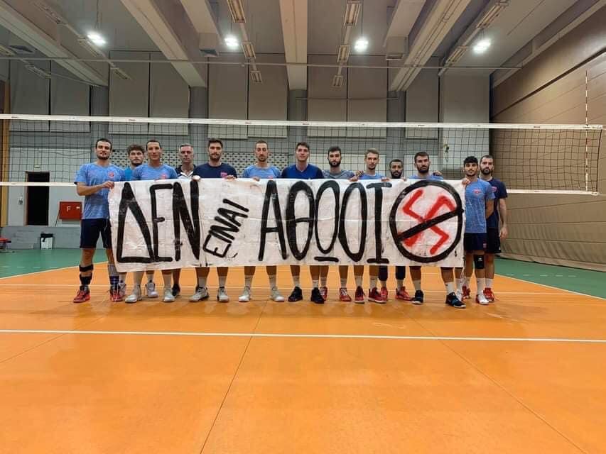 Κρατώντας ένα πανό το οποίο γράφει "Δεν είναι αθώοι", θέλοντας έτσι να στείλει το δικό της μήνυμα εναντίον του ναζισμού εν όψει της σημερινής (7/10) απόφασης στη δίκη της Χρυσής Αυγής, φωτογραφήθηκε η ανδρική ομάδα βόλεϊ του Ιστορικού.