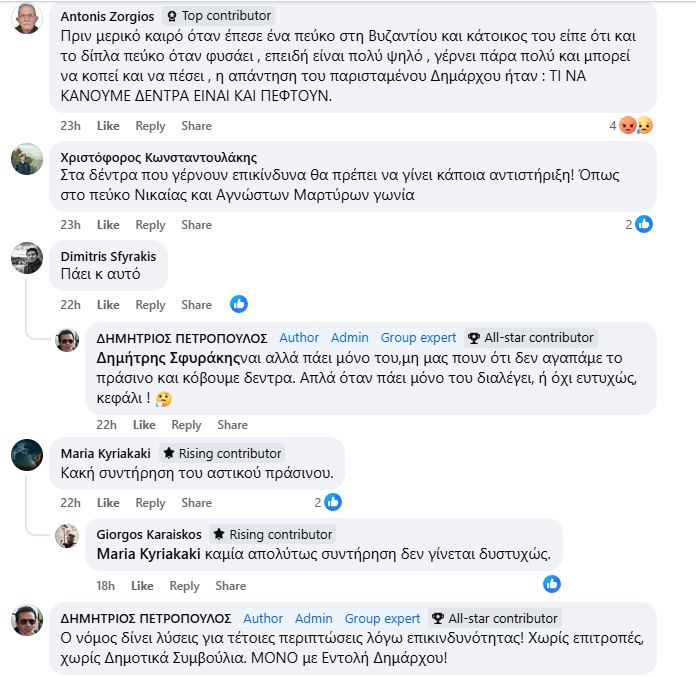 Υπάρχει και μια άλλη παγίδα: ο φόβος να μην κατηγορηθεί ο Δήμος ότι «κόβει τα δέντρα» και «δεν αγαπάει το πράσινο».