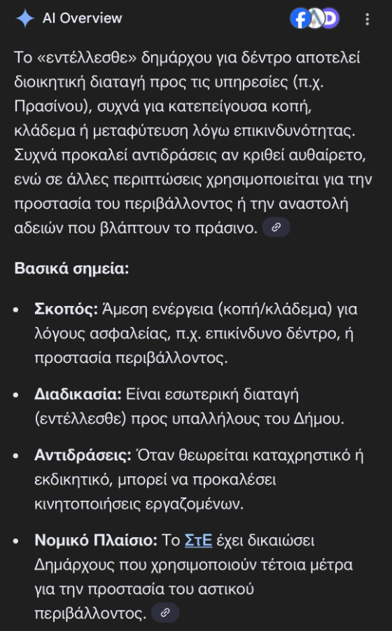 Ο Δημήτρης Πετρόπουλος θυμίζει κάτι πολύ συγκεκριμένο: ο νόμος δίνει τη δυνατότητα για άμεση παρέμβαση σε επικίνδυνα δέντρα, μόνο με εντολή Δημάρχου, χωρίς επιτροπές, χωρίς Δημοτικά Συμβούλια.