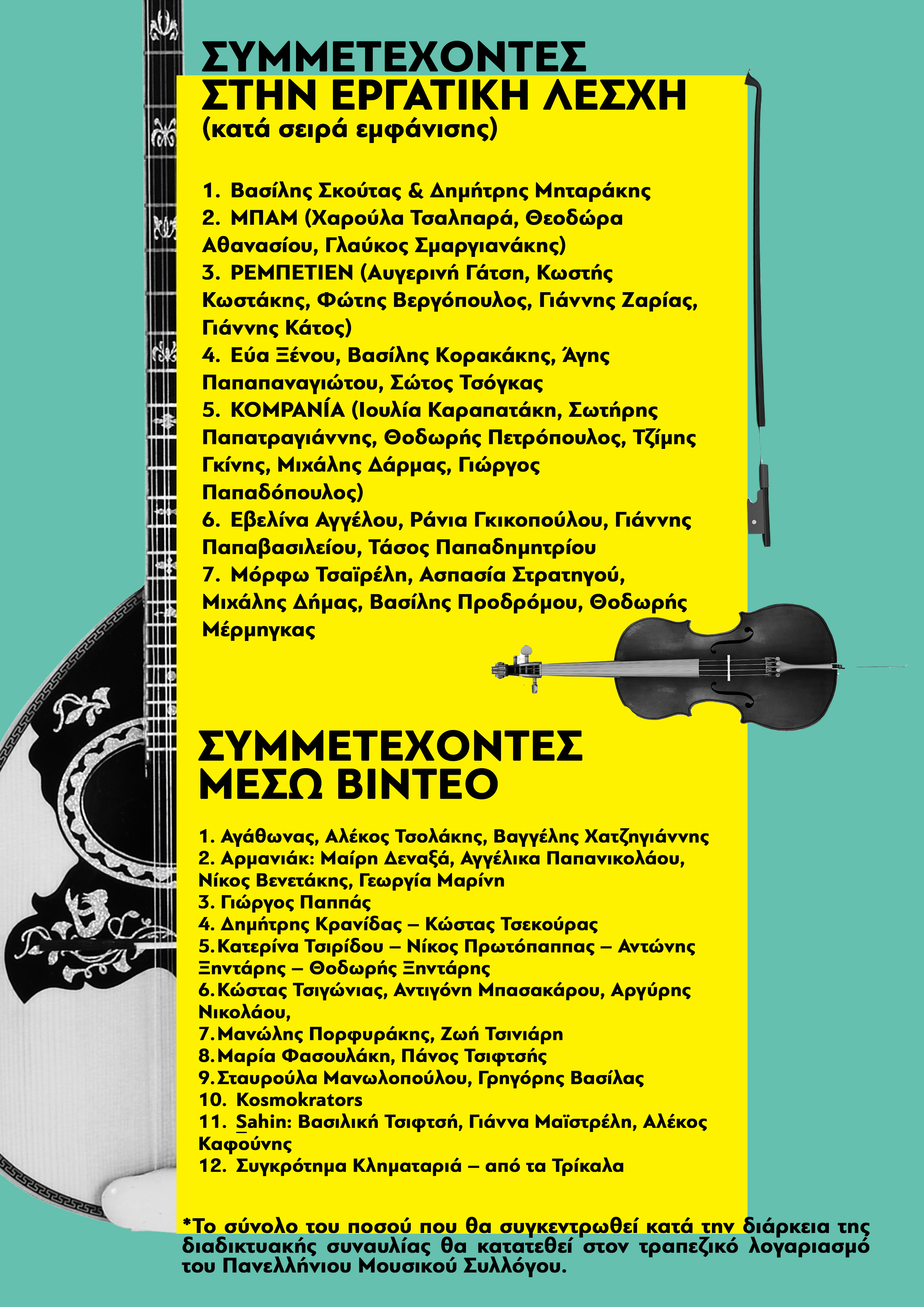 Διαδικτυακή συναυλία λαϊκής και ρεμπέτικης μουσικής από την Εργατική Λέσχη Νέας Σμύρνης