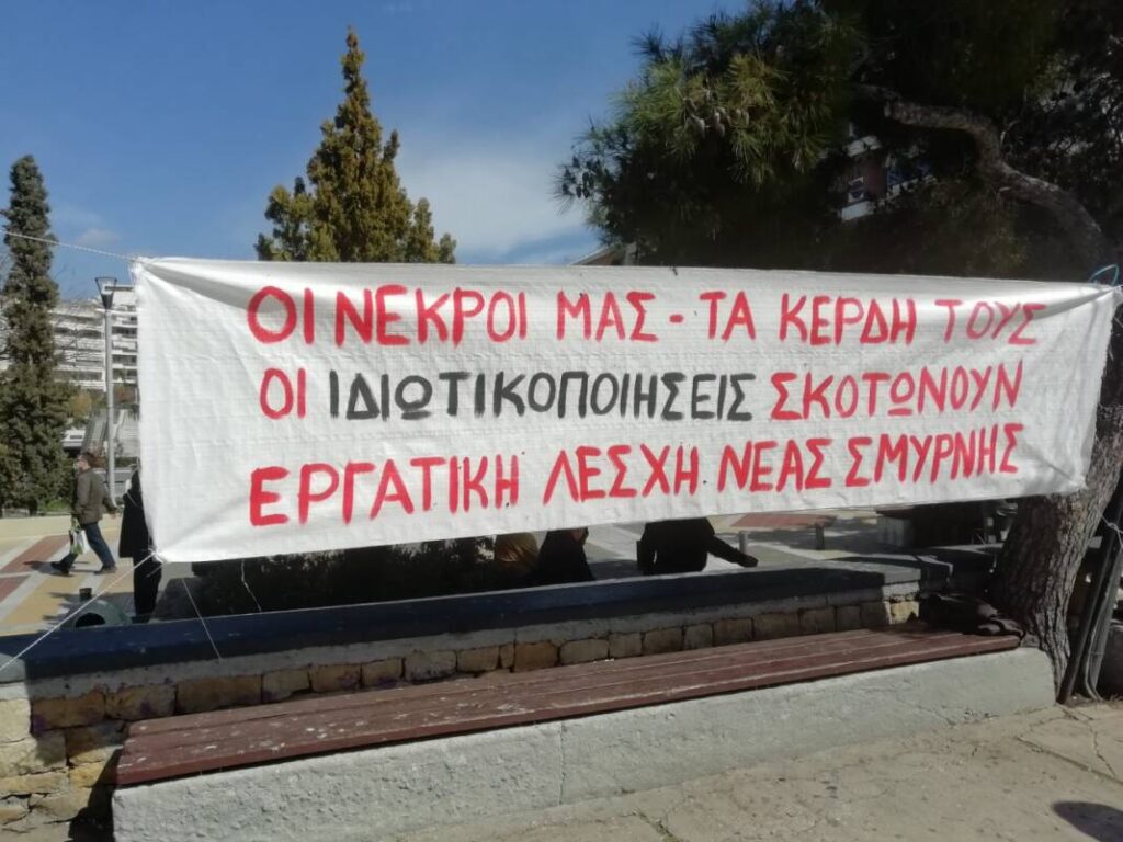 Συγκέντρωση στην πλατεία της Νέας Σμύρνης με μικροφωνική πραγματοποιεί εργατική λέσχη της περιοχής και πολιτικές συλλογικότητες.