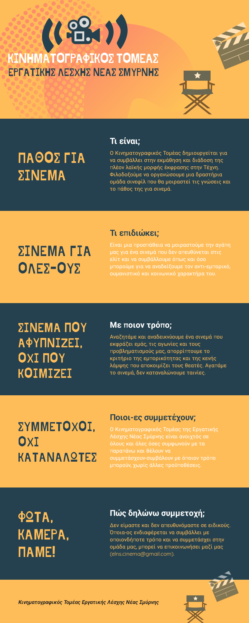 Ο Κινηματογραφικός Τομέας της Εργατικής Λέσχης Νέας Σμύρνης δεν αποτελείται από (και δεν απευθύνεται σε) ειδικούς.