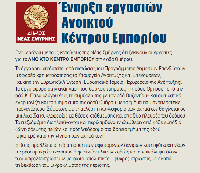 Ο Δήμος απέστειλε την παρακάτω ενημέρωση για το έργο Ανοιχτό Κέντρο Εμπορίου