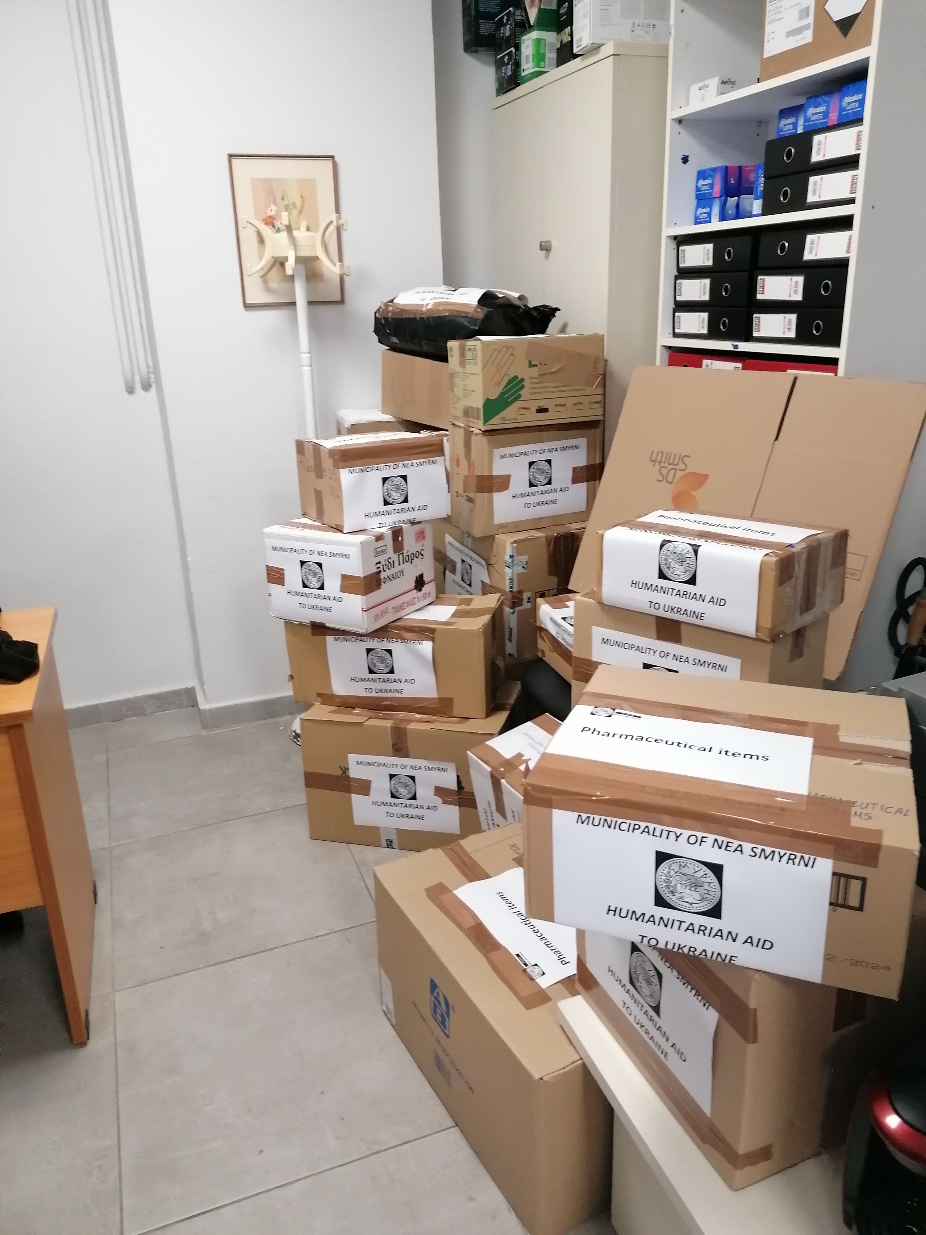 Στα συγκεντρωθέντα είδη από τους κατοίκους ο Δήμος Ν. Σμύρνης πρόσθεσε και την δική του συνεισφορά σε Υγειονομικό - Φαρμακευτικό Υλικό και Είδη Διατροφής, φροντίζοντας και για την ασφαλή αποστολή τους στην Ουκρανία.