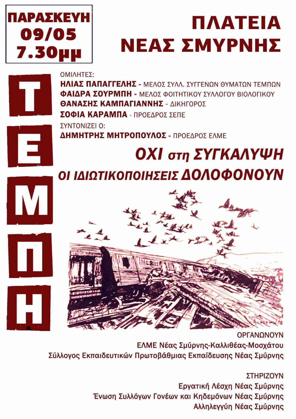 Εκδήλωση για το έγκλημα των Τεμπών οργανώνει η ΕΛΜΕ και ο Σύλλογος Εκπαιδευτικών Νέας Σμύρνης
