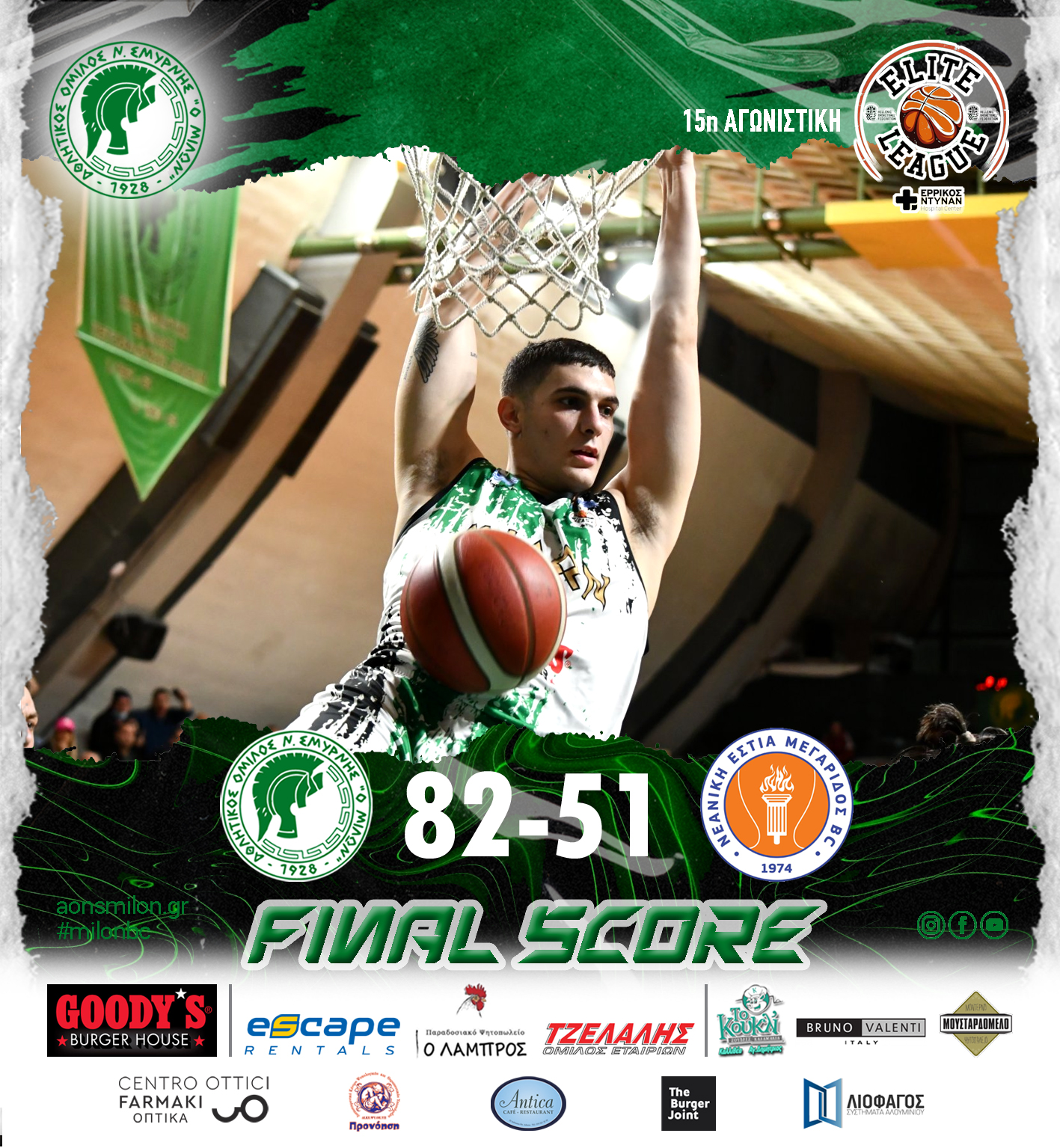 Το νικηφόρο της σερί συνέχισε η ομάδα μπάσκετ του Μίλωνα, η οποία κέρδισε άνετα τη Μεγαρίδα με 82-51 στο "Κροίσος Πέρσης" για τη 15η αγωνιστική της Elite League.