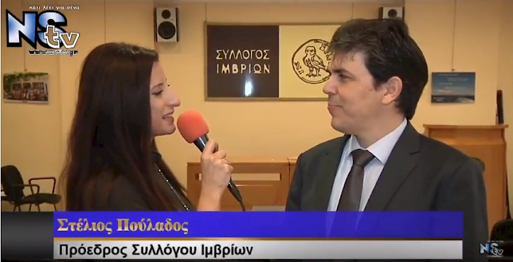 Στην κάμερα της διαδικτυακής τηλεόρασης της Νέας Σμύρνης www.nstv.grμίλησε ο Πρόεδρος του Συλλόγους Στέλιος Πούλαδος, ο οποίος ευχήθηκε για την καινούργια χρονιά σχολιάζοντας με συγκίνηση τη σύνδεση με το νησί της Ίμβρου και το τραγούδι που τραγούδησαν τα παιδιά.
