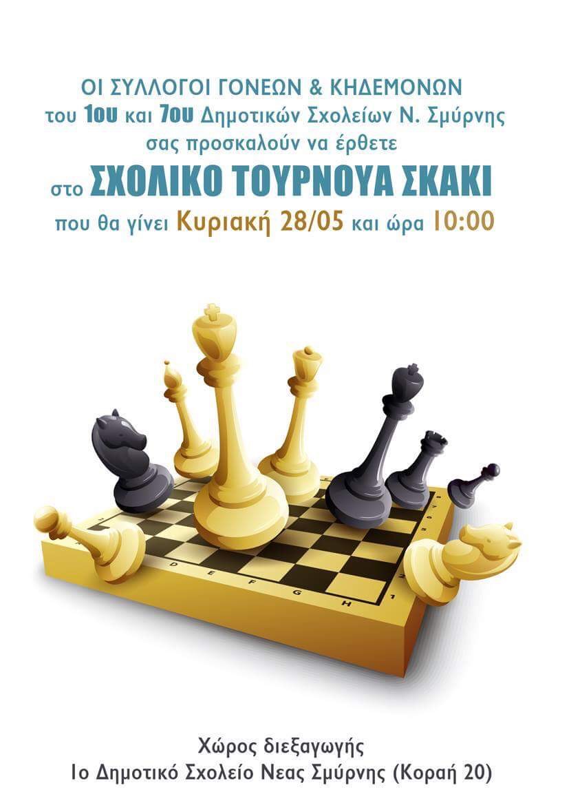 Εκπαιδευτική Ομιλία και τουρνουά σκάκι οργανώνει στις 27 και 28 Μαίου το 1ο Δημοτικό Νέας Σμύρνης