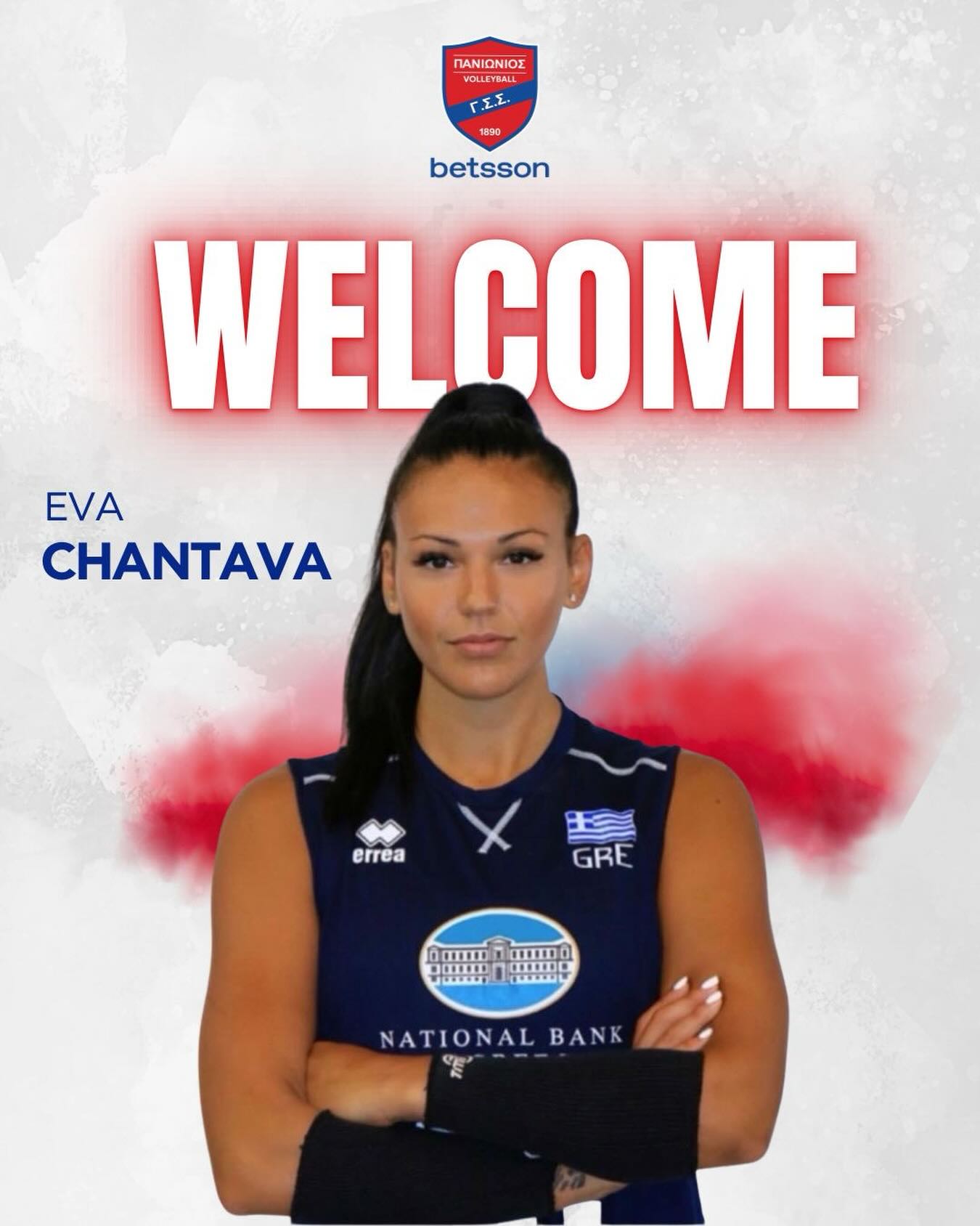 "Η διοίκηση του τμήματος βόλεϊ του Πανιωνίου ανακοινώνει την έναρξη της συνεργασίας της με την Εύα Χαντάβα. Η έμπειρη ακραία έχει ύψος 1.87 μ. και είναι γεννημένη στις 26/10/1990.