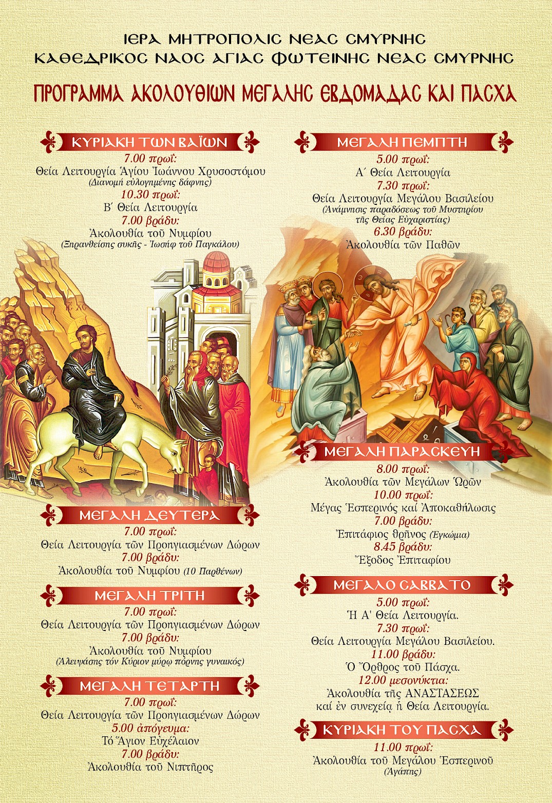 Ἱ.Μ Ναός τῆς Ἁγίας Φωτεινῆς Νέας Σμύρνης.Πρόγραμμα Αγίας και Μεγάλης Εβδομάδας