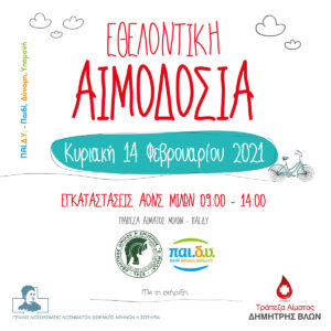 Ο Μίλωνας και το σωματείο ΠΑΙ.ΔΥ διοργανώνουν την Κυριακή 14 Φεβρουαρίου και ώρες 09:00-14:00 εθελοντική αιμοδοσία στις εγκαταστάσεις του συλλόγου. Δείτε παρακάτω την ανακοίνωση του Μίλωνα καθώς και τον σύνδεσμο στον οποίο μπορείτε να δηλώσετε τη συμμετοχή σας: