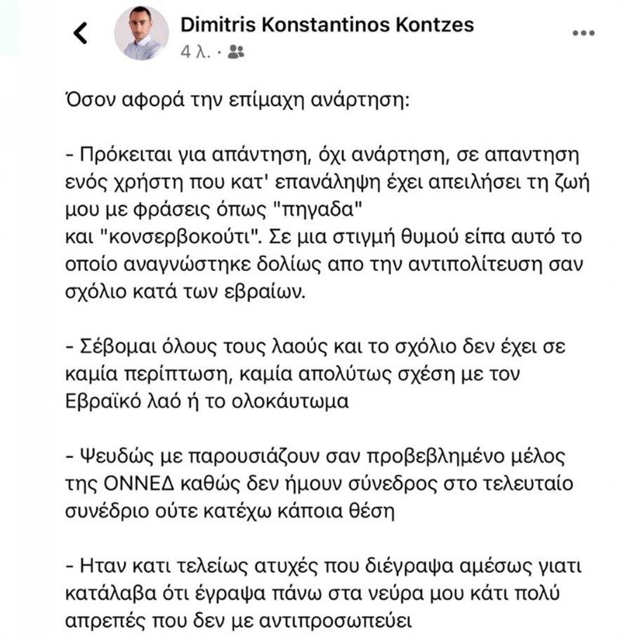 Η χυδαία αναφορά του Δημήτρη Κοντζέ, που θυμίζει φρασεολογία ναζί, προκαλεί ήδη αντιδράσεις.