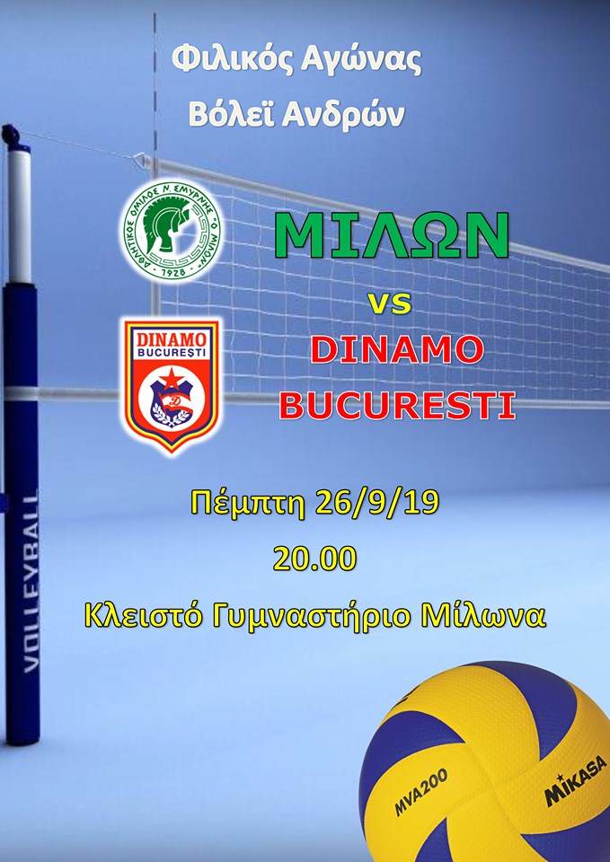 Φιλικό με Ντιναμό Βουκουρεστίου οι Άνδρες Βόλεϊ του Μίλωνα