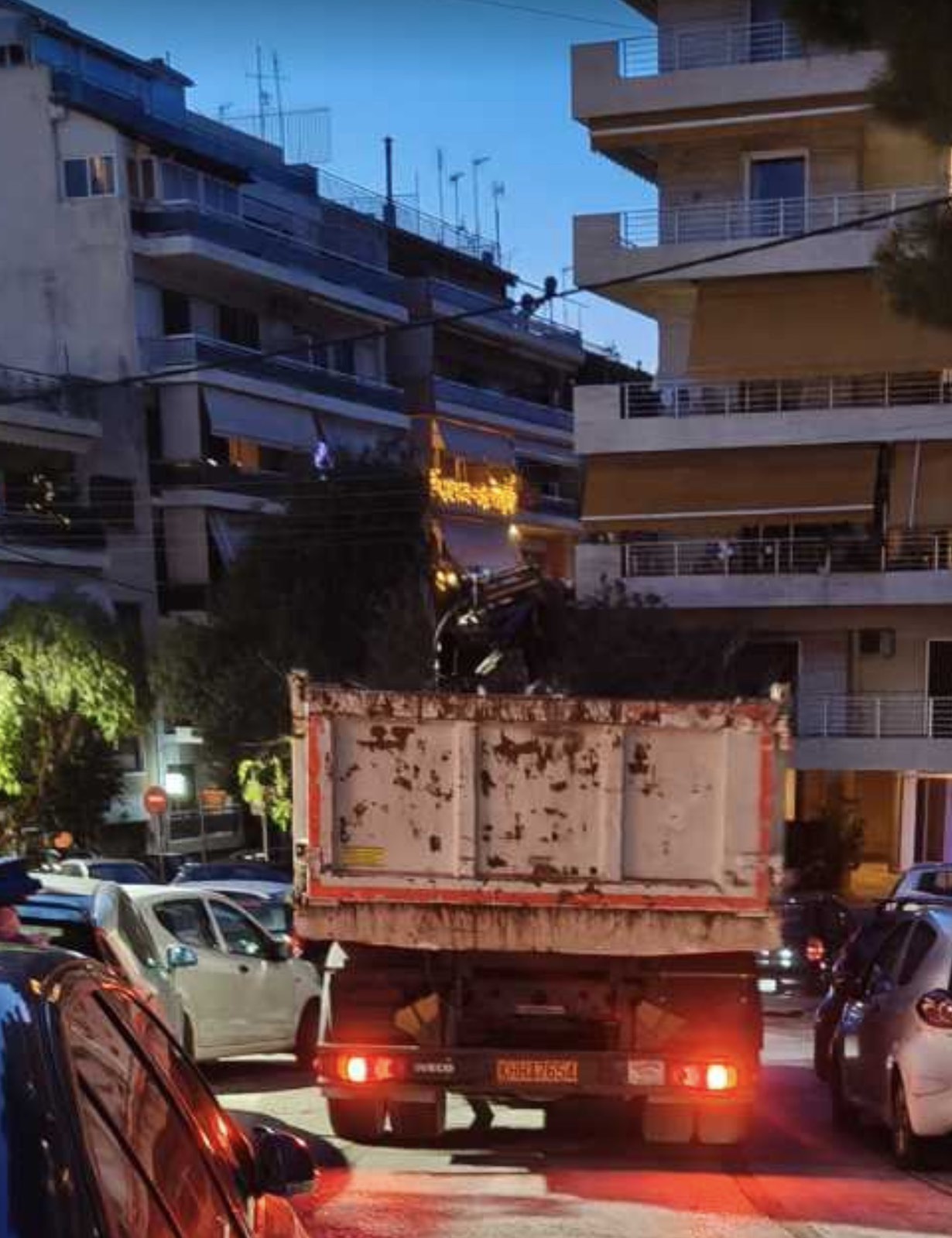 Φορτηγό του Δήμου Νέας Σμύρνης «χτύπησε» σταθμευμένο Ι.Χ. με δαγκάνα – Καταγγελία κατοίκου για ζημιά και σιωπή του Δήμου