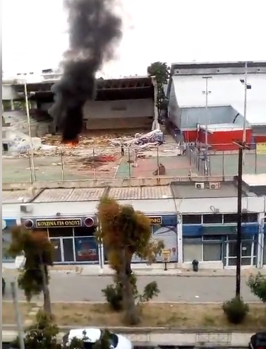 Φωτιά έχει ξεσπάσει εδώ και λίγη ώρα στο γήπεδο επί της οδού Αρτάκης όπου και εκτελούνταν εργασίες κατεδάφισης.