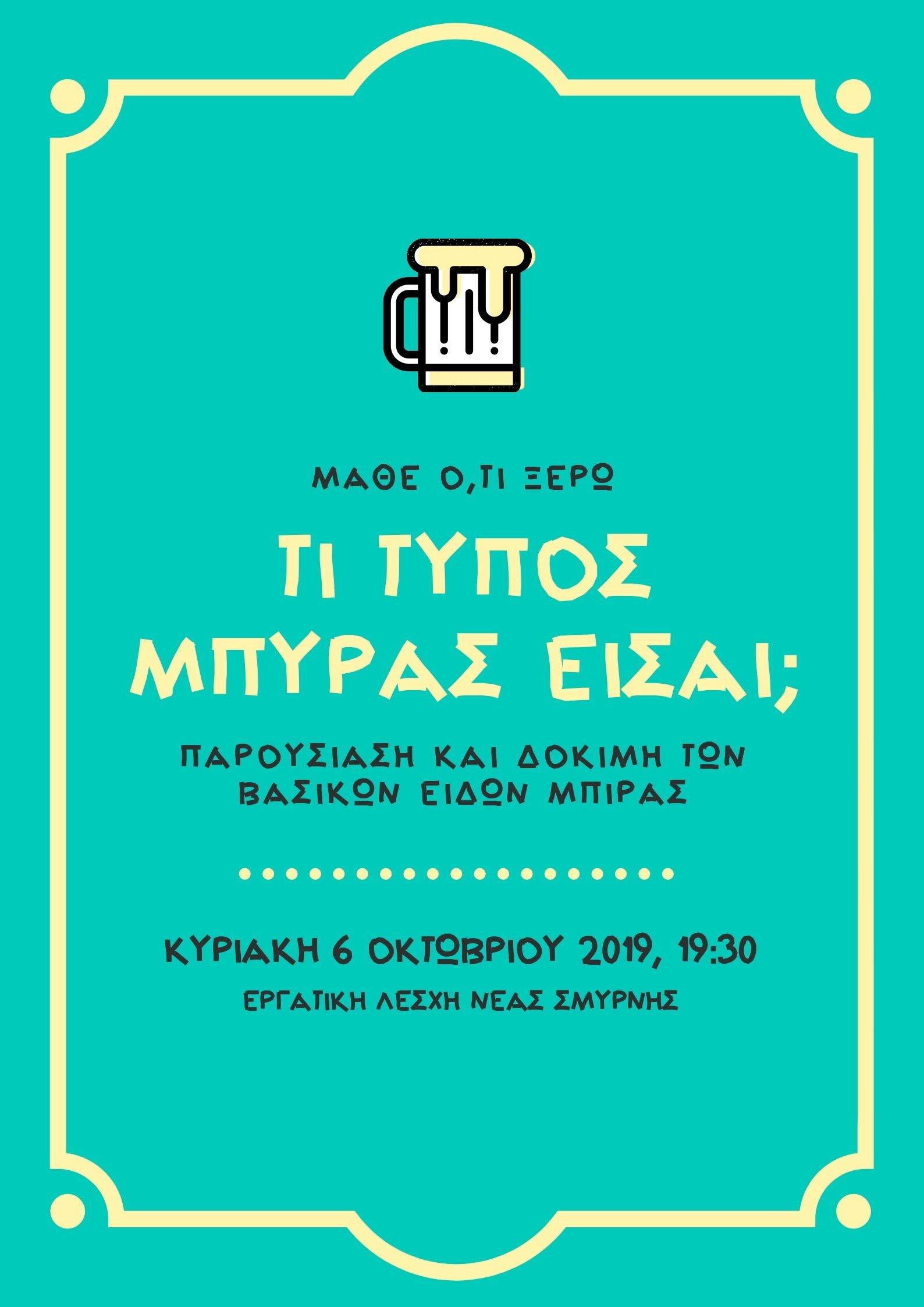 Στην εγχώρια παραγωγή μπίρας έχουν έρθει τα πάνω κάτω, με τις μικροζυθοποιίες να ξεπετάγονται σαν τα μανιτάρια. Στην Εργατική Λέσχη Νέας Σμύρνης εκμεταλλευόμαστε την ευκαιρία και -στα πλαίσια της ομάδας «Μάθε ό,τι ξέρω»- σας παρουσιάζουμε τους βασικούς τύπους μπίρας, δοκιμάζοντας 8 εγχώριες μικροζυθοποιίες και δίνοντας απαντήσεις σε μερικά από τα πιο ενδιαφέροντα ερωτήματα σχετικά με την μπίρα: