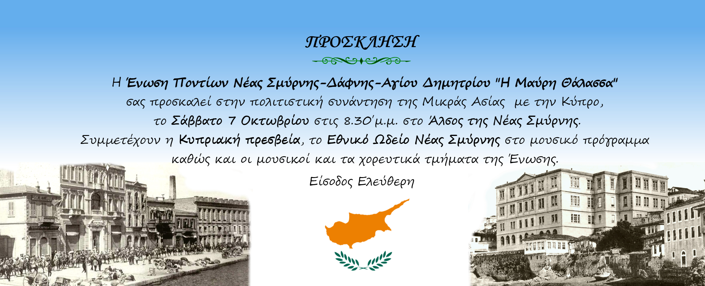 H Ενωση Ποντίων Νέας Σμύρνης ''Η Μαύρη Θάλασσα'' προσκαλεί σε πολιτιστική βραδυά