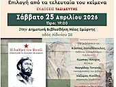 “Η διαθήκη του Φιντέλ Κάστρο” (Εκδόσεις “Ταξιδευτής”), μια επιλογή από τα τελευταία κείμενα του Κουβανού ηγέτη παρουσιάζεται το Σάββατο 25 Απριλίου ώρα 19:00 στη Δημοτική Βιβλιοθήκη (Αϊδινίου 28). Την εκδήλωση συνδιοργανώνουν ο Δήμος Νέας Σμύρνης, ο Πολιτιστικός Σύλλογος Χοσέ Μαρτί και οι Εκδόσεις “Ταξιδευτής”.