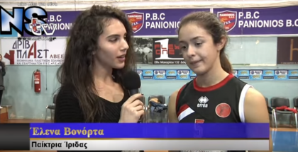 Η Έλενα Βονόρτα, Παίχτρια της Ίριδας, δήλωσε οτι στο 1ο σετ μπήκαν μουδιασμένες. Θεωρεί οτι αν ξεκινάνε απο την αρχή να παίζουν όπως έπαιξαν στο τέλος έχουν ελπίδες. Είναι αισιόδοξη για την ομάδα της. Την επόμενη αγωνιστική η Ίριδα θα παίξει με τον Πήγασο Χαϊδαρίου.