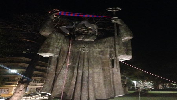 EKTAKTO. Kατέβασε η Δημοτική Αρχή το κασκόλ του Ιστορικού από το άγαλμα του Πατριάρχη στην πλατεία Χρυσοστόμου;