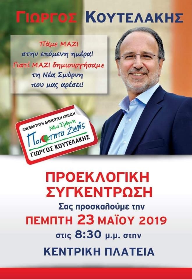 Την Πέμπτη στις 20:30 στην κεντρική Πλατεία η κεντρική προεκλογική ομιλία της παράταξης 'Ποιότητα Ζωής-Γιώργος Κουτελάκης''