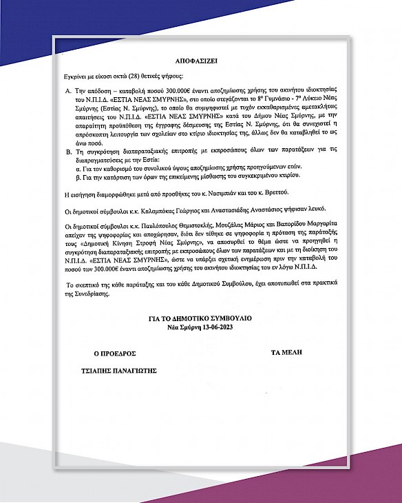 Ενίσχυση και προώθηση του ρόλου της ΕΣΤΙΑΣ Νέα Σμύρνης μέσα και έξω από τα όρια του Δήμου μας.