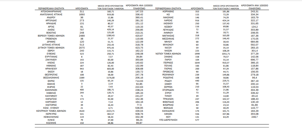 Οι νέοι θάνατοι ασθενών με COVID-19 είναι 19, ενώ από την έναρξη της επιδημίας έχουν καταγραφεί συνολικά 30.349 θάνατοι. Το 95.7% είχε υποκείμενο νόσημα ή/και ηλικία 70 ετών και άνω.